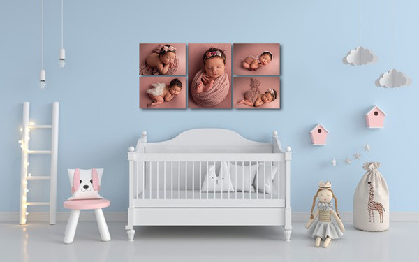Esse conjunto conta com 5 peças, sendo 1 unidade de 40x60cm e 4 unidades de 45x30cm, com fotos impressas em papel fotográfico laminado, coladas em chapa de MDF com acabamento lateral preto de 3cm. Uma forma elegante e moderna de eternizar momentos especiais.