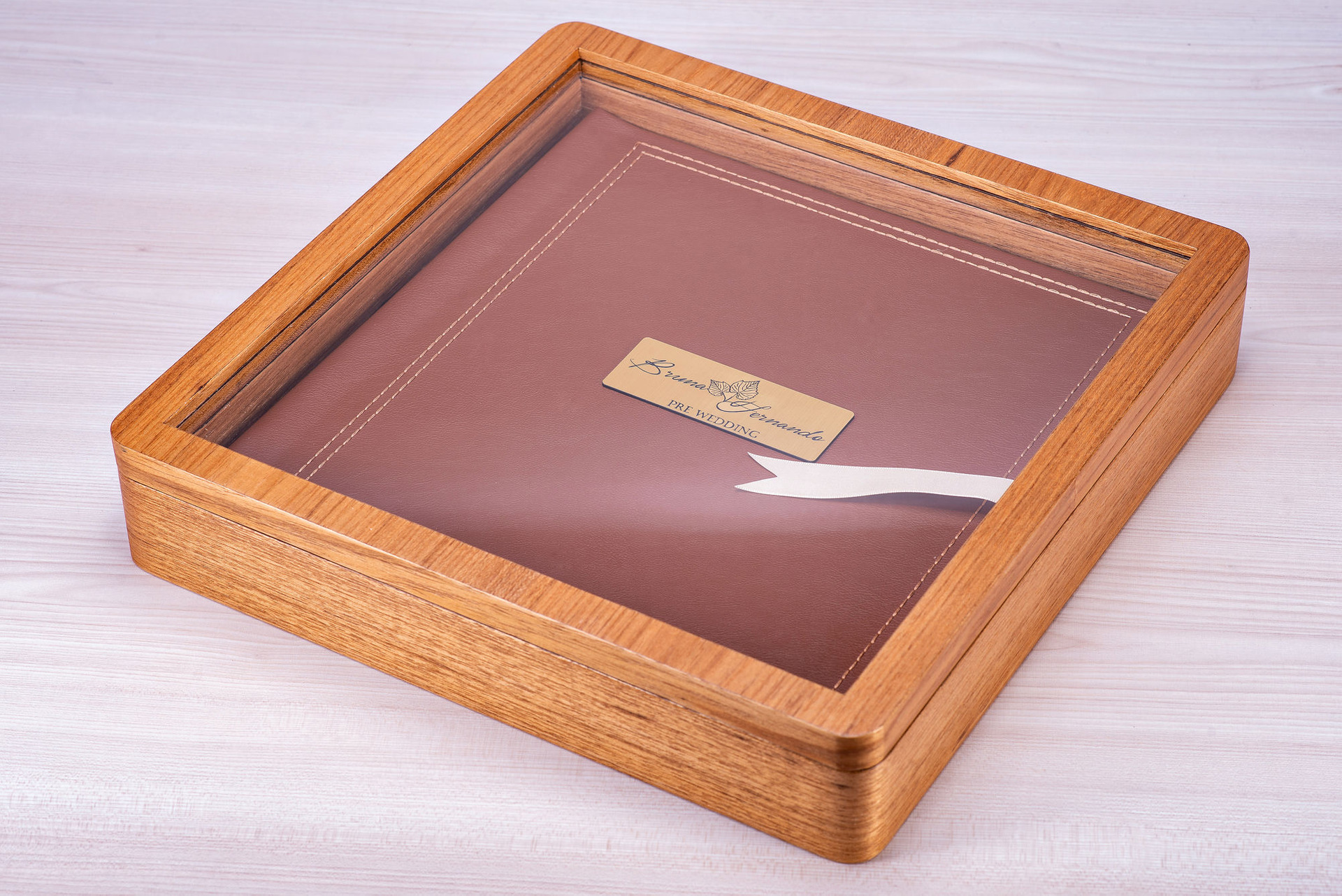 Criada para armazenar com segurança e agregar beleza à decoração, essa embalagem combina madeira natural e revestimentos sofisticados em diversas cores e texturas. O toque final fica por conta da personalização em gravação a laser, impressão UV ou placa decorativa, tornando cada peça única. Para mais praticidade, conta com uma fita interna, que pode ser personalizada com um nome ou detalhe especial como um adicional opcional.